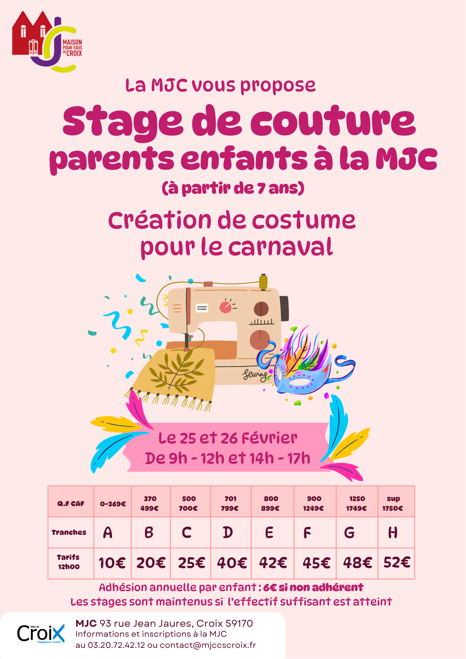 Le Carnaval approche à grands pas et la MJC Maison pour tous de Croix vous invite à partager un moment de complicité créative. Que vous soyez débutant ou à l’aise avec une machine, venez fabriquer ensemble le costume de vos rêves !